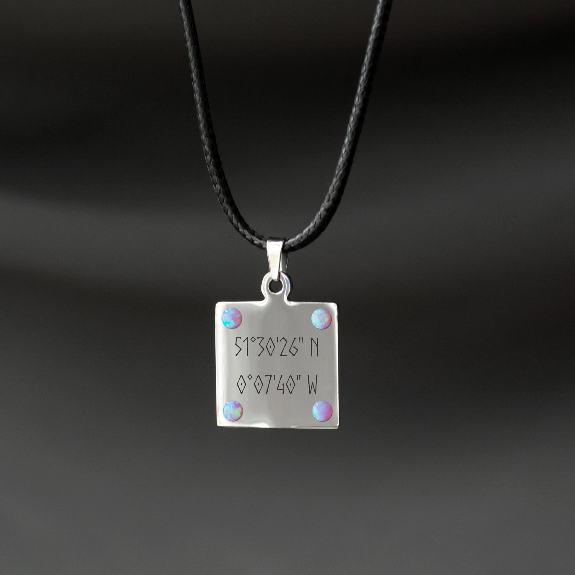 Each pendant is carefully engraved on premium stainless steel. The addition of beautiful gemstones — including opal, CZ, onyx or ruby — gives every piece a distinctive look. Whether you want to mark a special place, celebrate a loved one, or create a meaningful keepsake, this necklace is designed to tell your story.