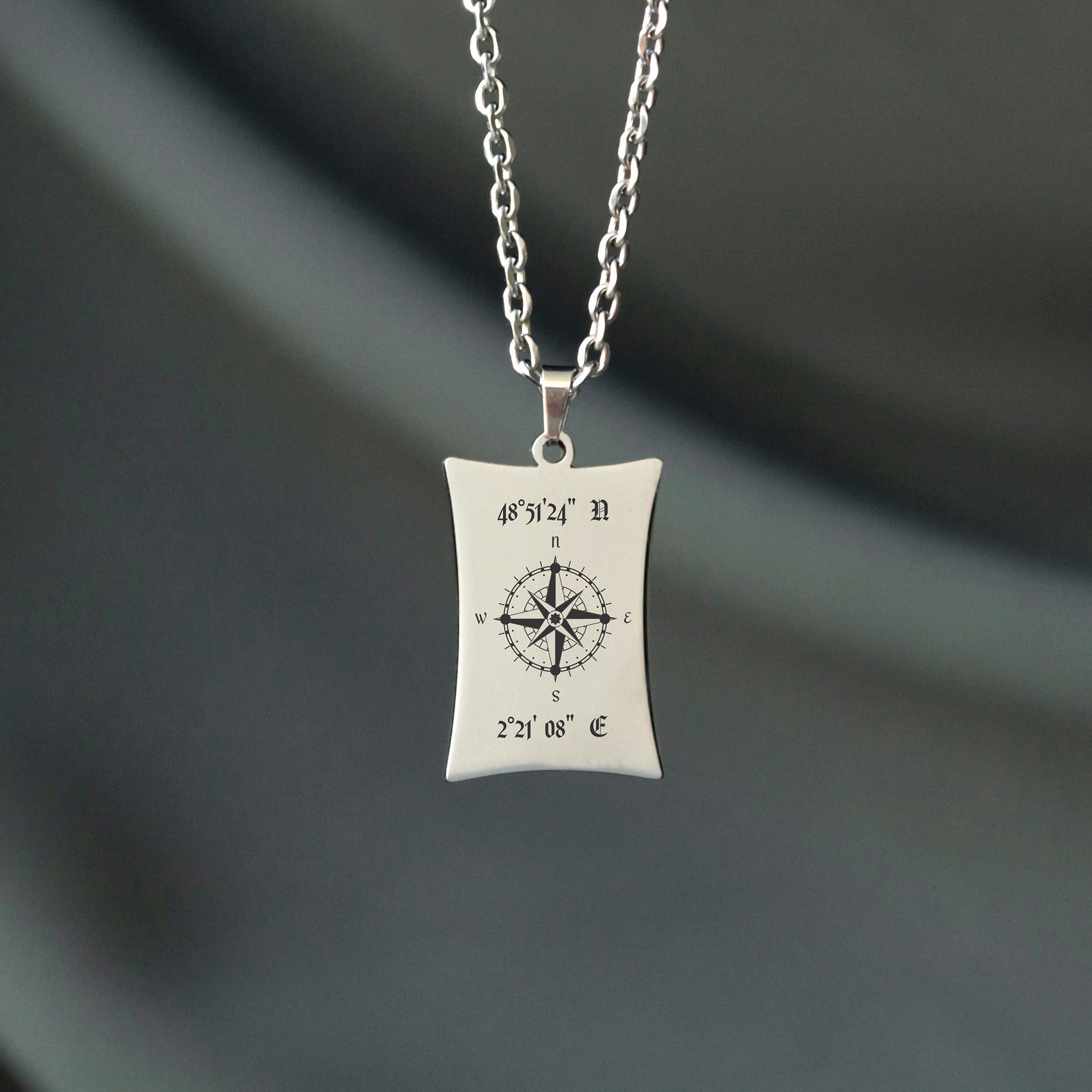 Coordinates Necklace with Compass – Personalized Engraved Jewelry