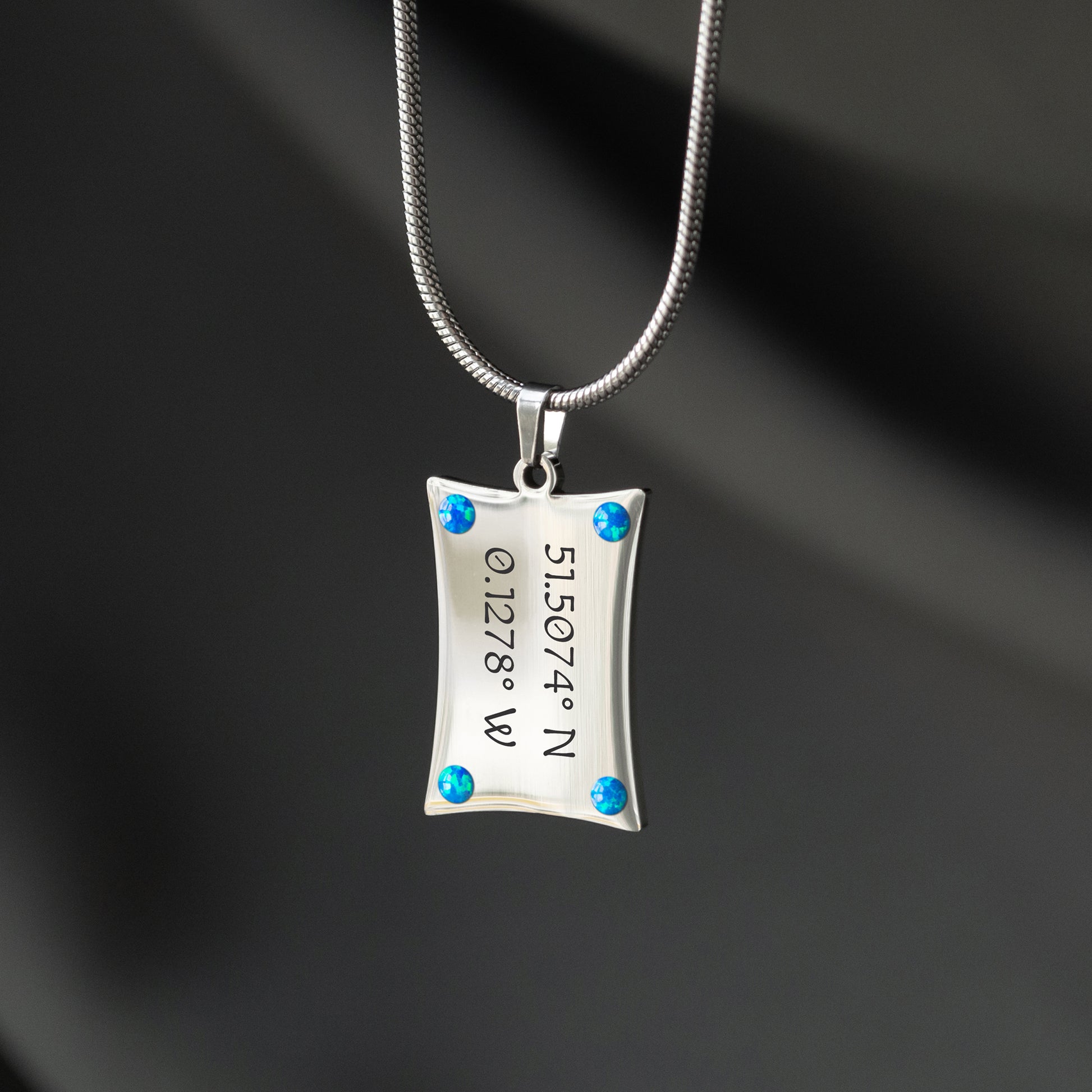 Each pendant is carefully engraved on premium stainless steel. The addition of beautiful gemstones — including opal, CZ, onyx or ruby — gives every piece a distinctive look. Whether you want to mark a special place, celebrate a loved one, or create a meaningful keepsake, this necklace is designed to tell your story.