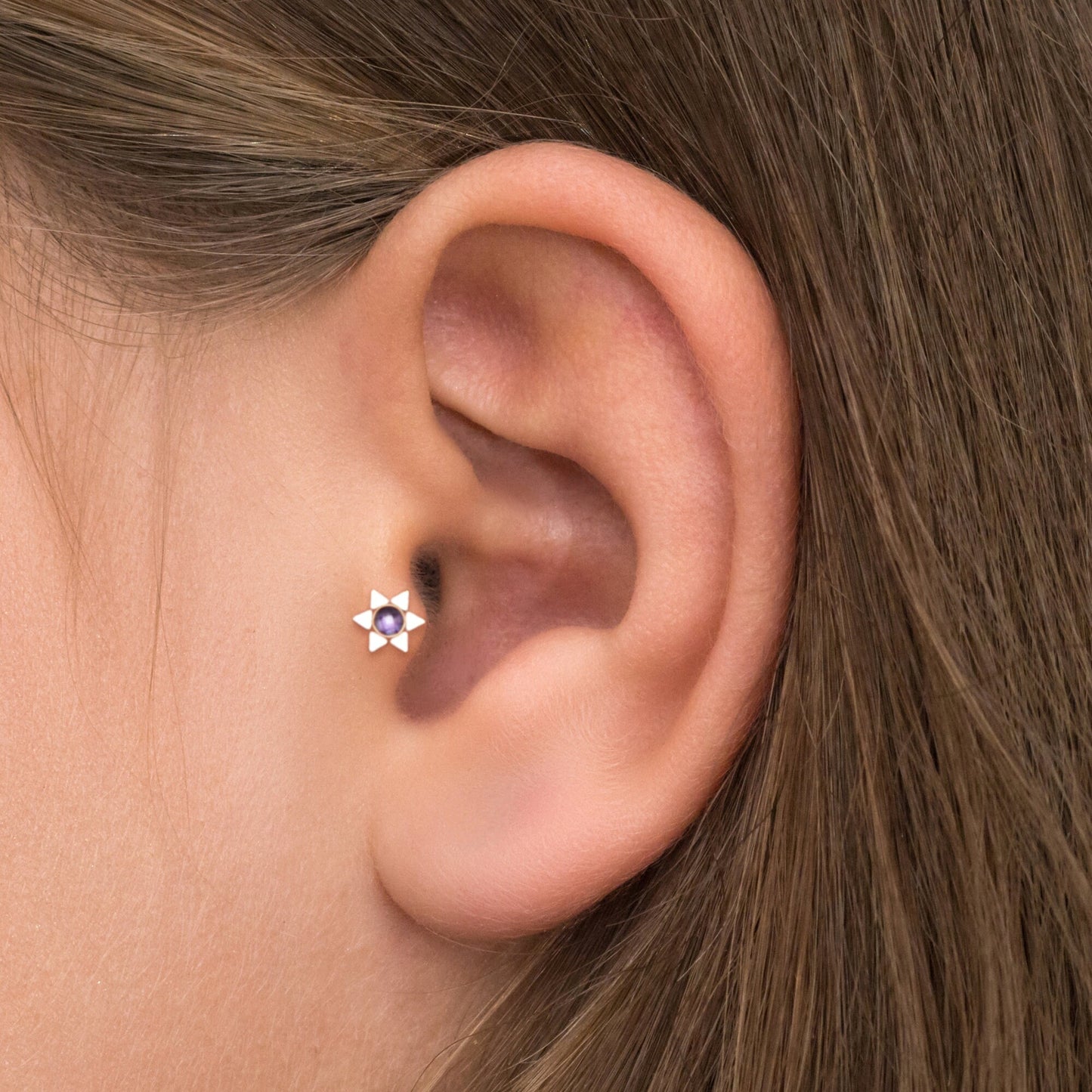 Pascale C. Perfect size for a tragus piercing, can sleep with it without any problems.