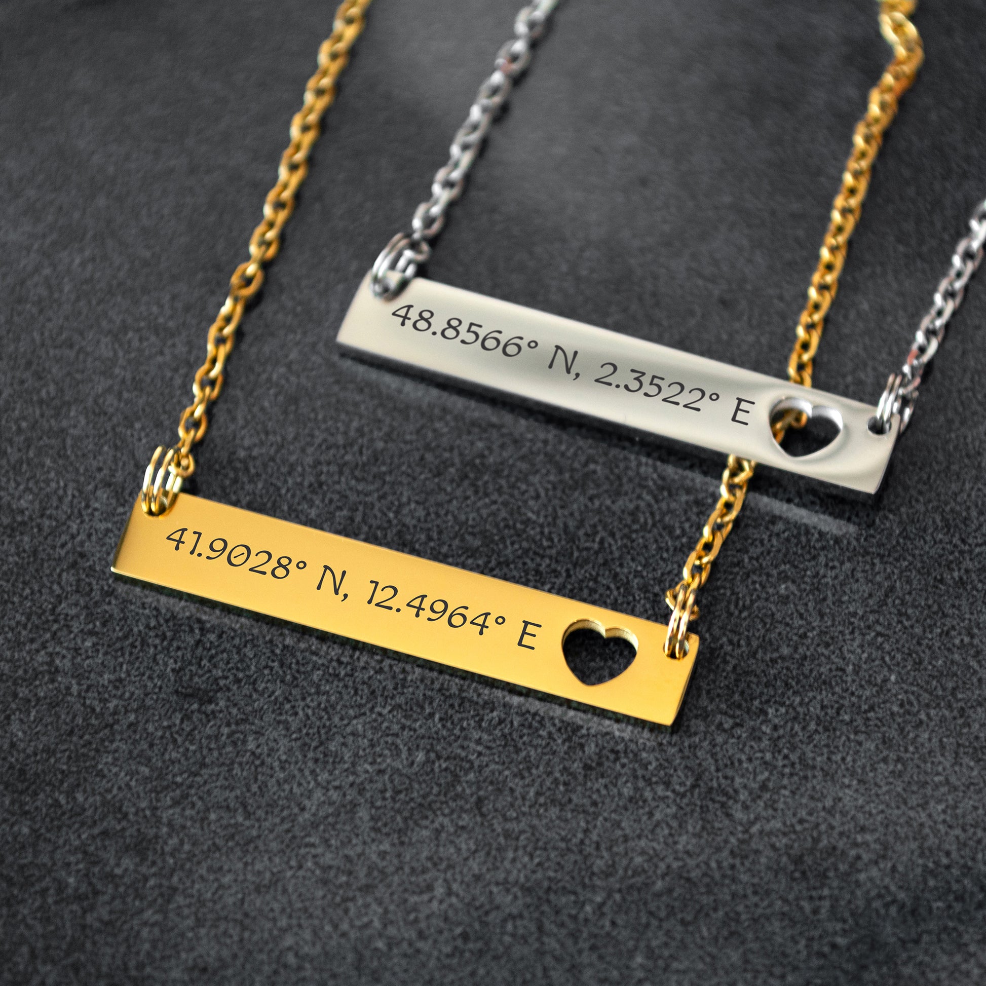 Engraved Coordinates Necklace – Custom Stainless Steel Jewelry