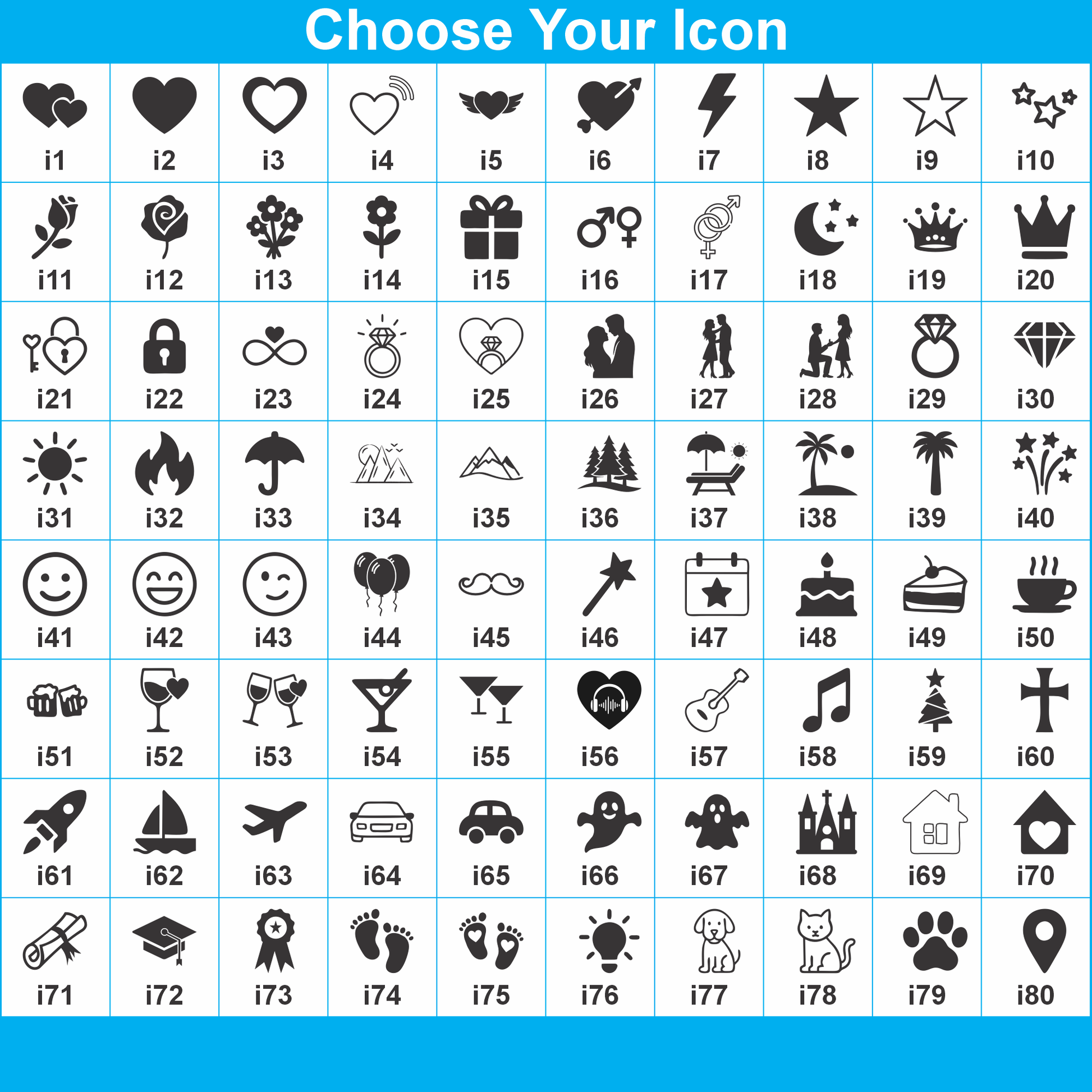 ✔ Engraving options: Names, Short Quotes, Words, Symbols, Icons