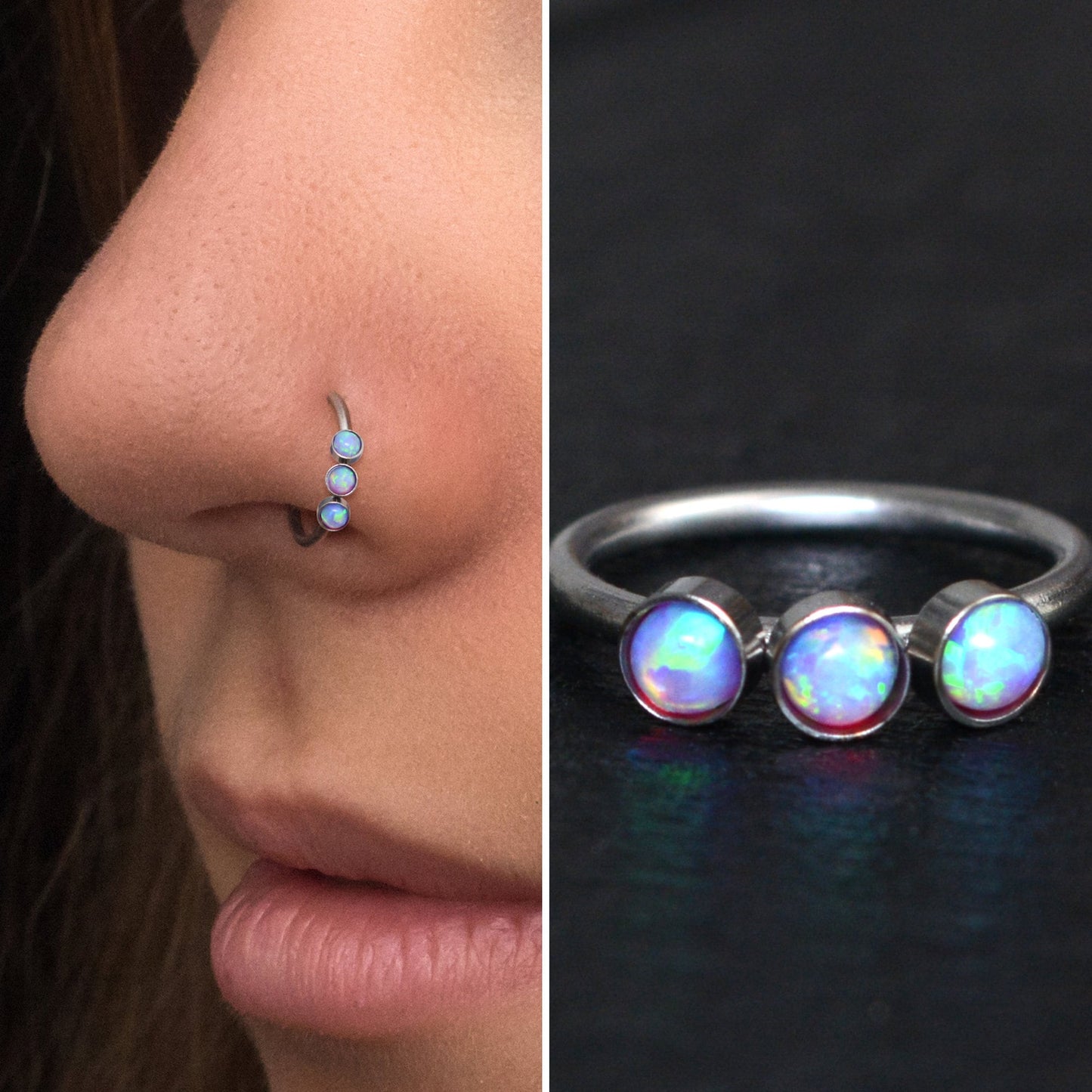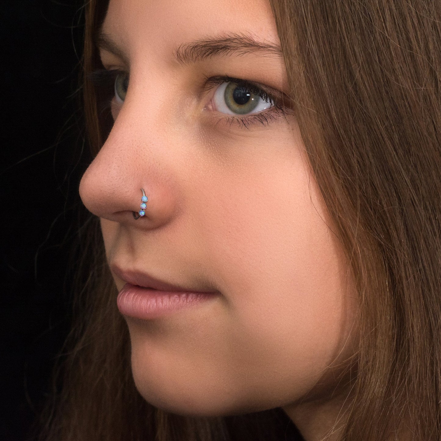 This piece is so beautiful! Unfortunately I didn't go with the measurements I got (I thought for sure I measured wrong since it appeared I needed a 10 mm size, but everyone else was getting 8 mm). I thought I would be ok with a 9, but it rested right up on my nose, and since I've only worn a stud for the past 13 years or so, I just couldn't get used to it. Anyway, I loved it so much I decided to order 3 more pieces right away! The box it shipped in is so cute, and it really is beautiful. I got the Purple Opal, which is lovely, but unfortunately wasn't as Purple as I would have liked - it always looked more bluish. Still quite beautiful! Can't wait til the new ones arrive!