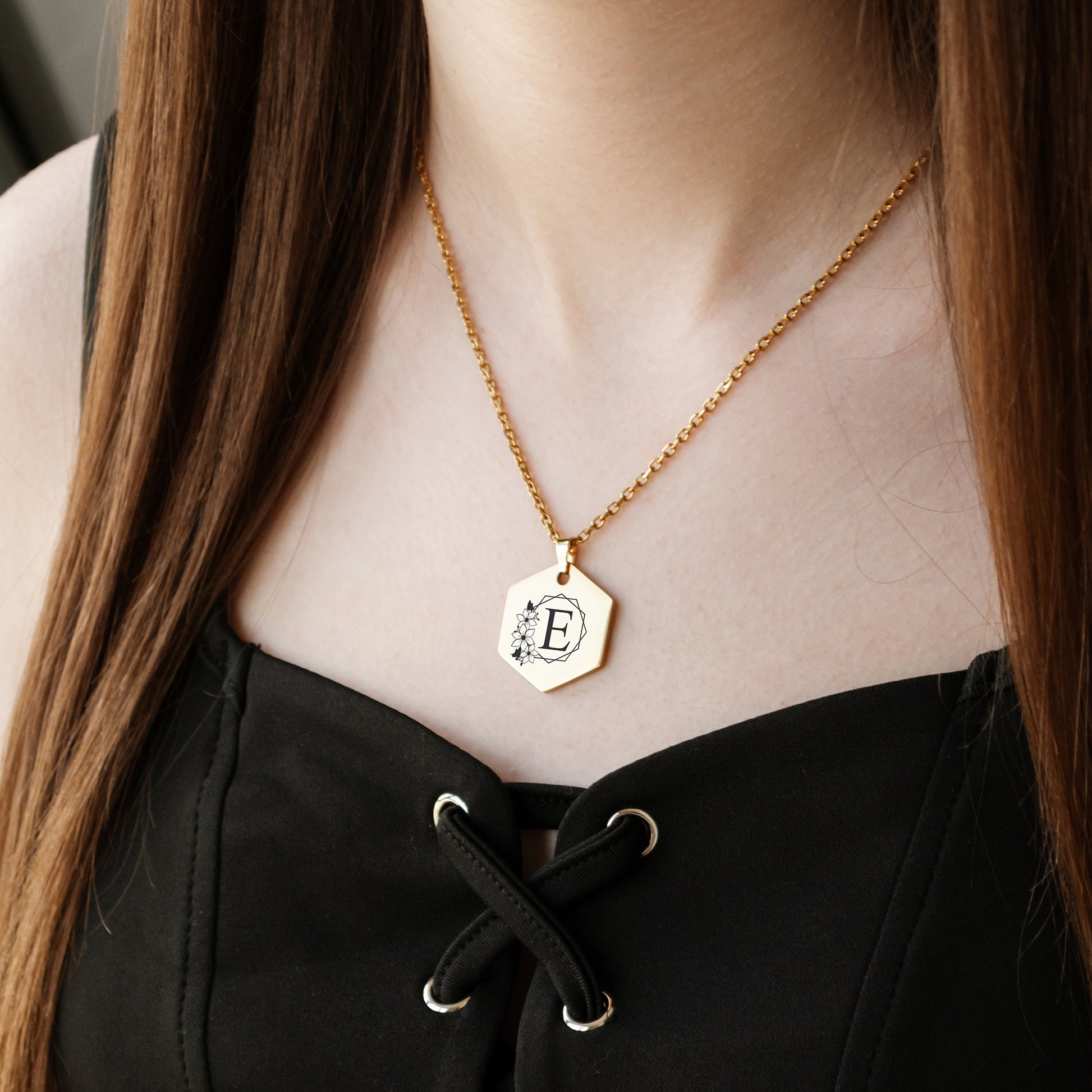 This custom engraved necklace features your chosen initial — a delicate floral letter design that expresses your individuality and timeless elegance. Each piece is crafted to be truly one of a kind.