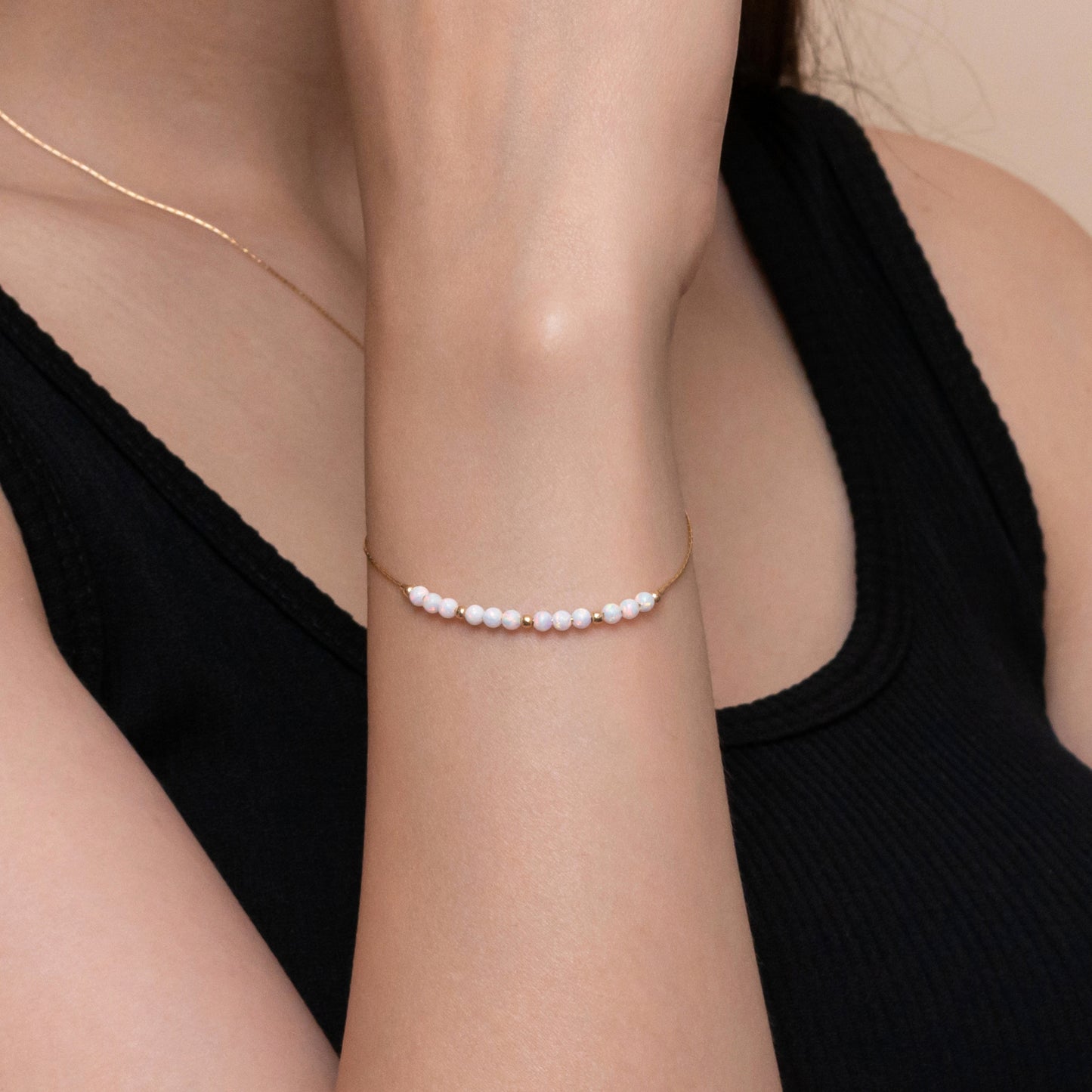 Modern and Tiny Opal Bracelet in Luxurious Silver or Gold-Filled