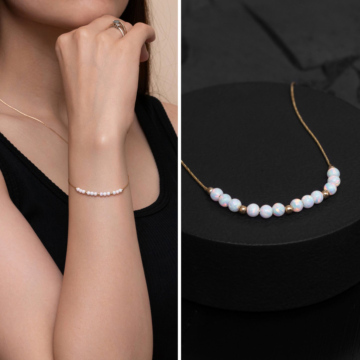 Elevate your look with our luxurious silver or gold-filled bracelet, adorned with exquisite opal beads in customizable colors, for a refined and elegant touch.