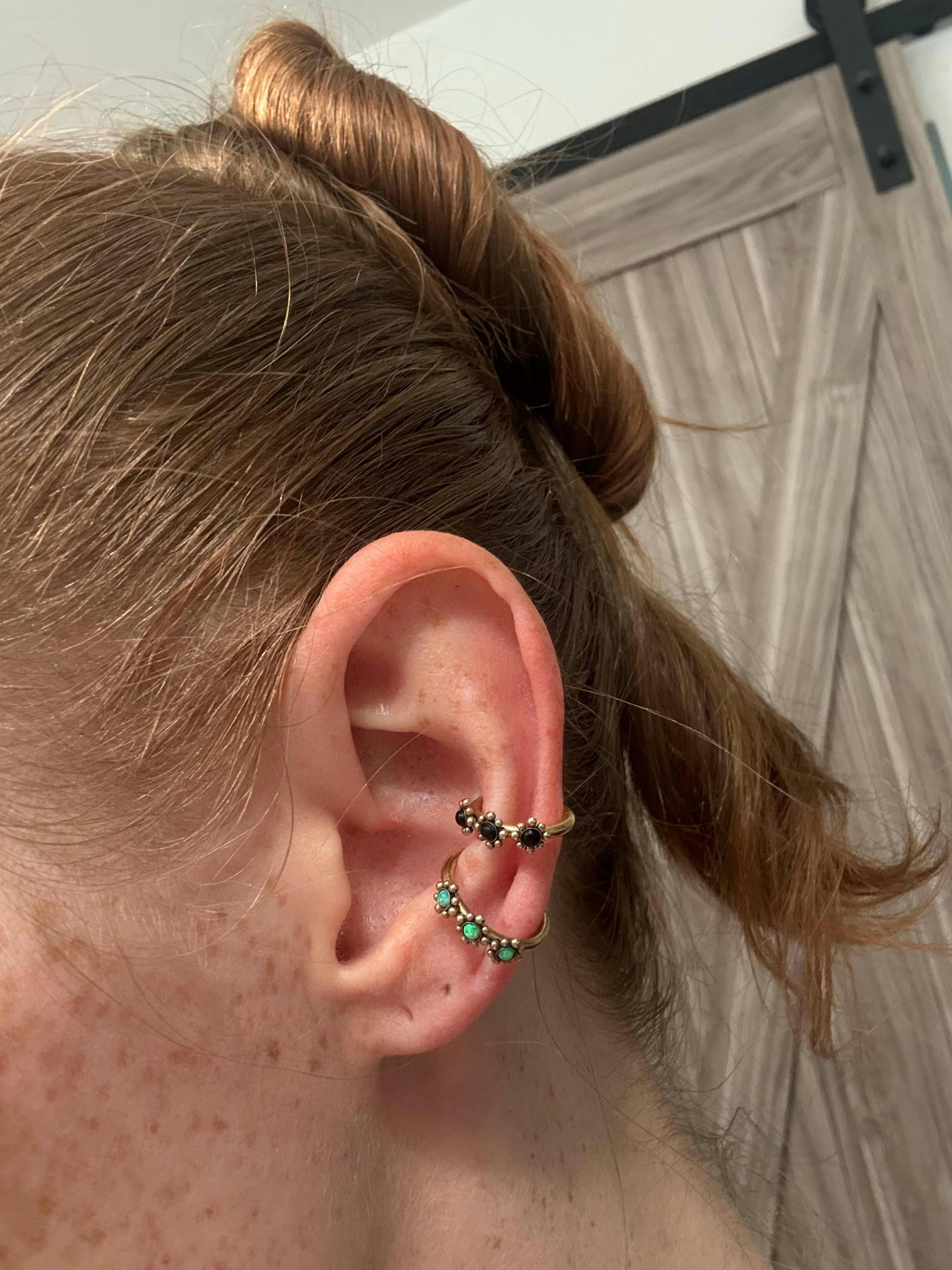 Maymie G. These earring are my absolutely favorite. I have multiple of thes clickers in different color opal stone. I can't tell you the amount of compliments I get wearing them. They are comfortable. You forget it's even in. Trust me by one. You won't regret it. What you see in the description photo is exactly what you get
