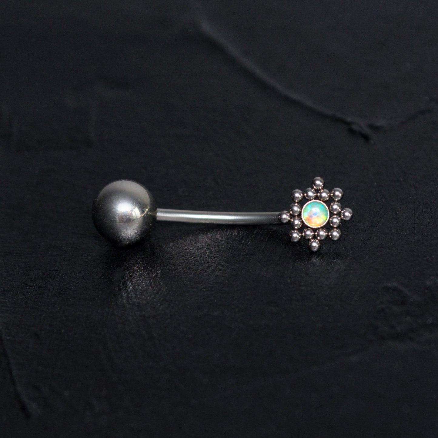 Nyah Super cute and arrived much faster than expected! (just under 2 weeks, ships from Ukraine) The gem portion is welded on, so it is only the bottom ball that screws off. It is an externally threaded piece