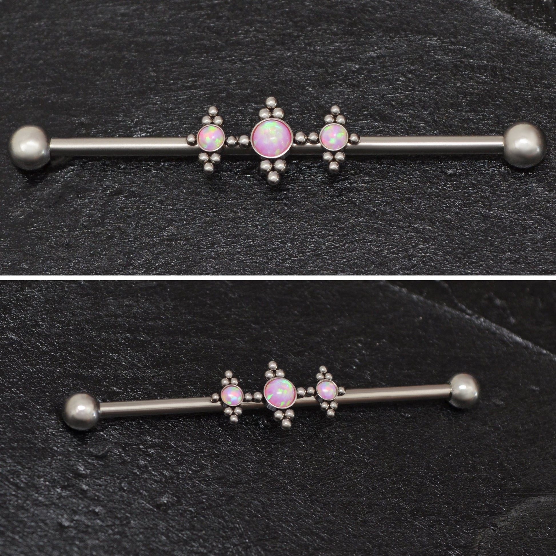 Margot C. Here is a comparison of my old barbell versus the new one. The opals are soooo beautiful and the quality is great. I can't wear it yet cause I'm healing some cheloids, but I'm very excited to try it on soon.