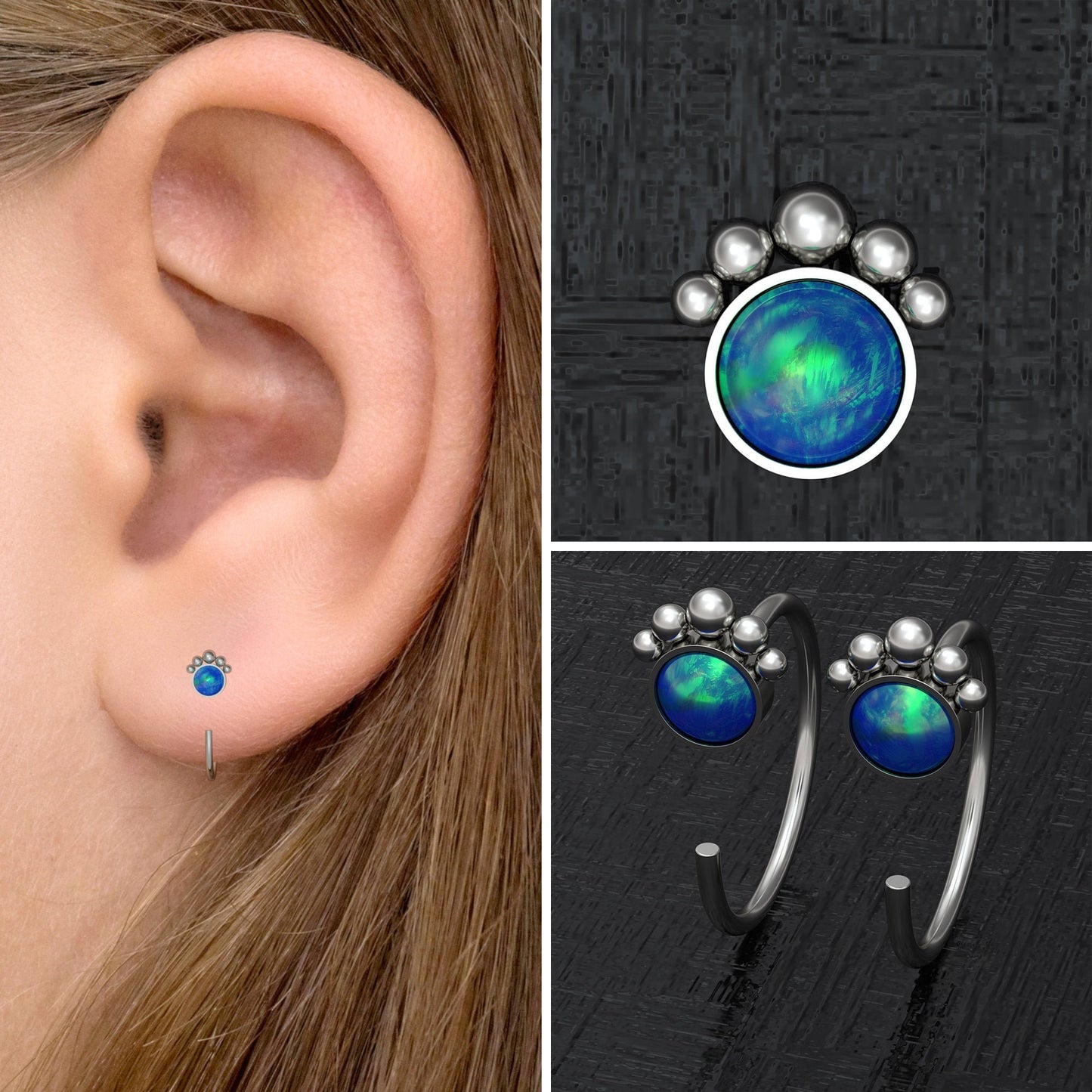 Opal Small Hoop Earrings Implant Grade Titanium