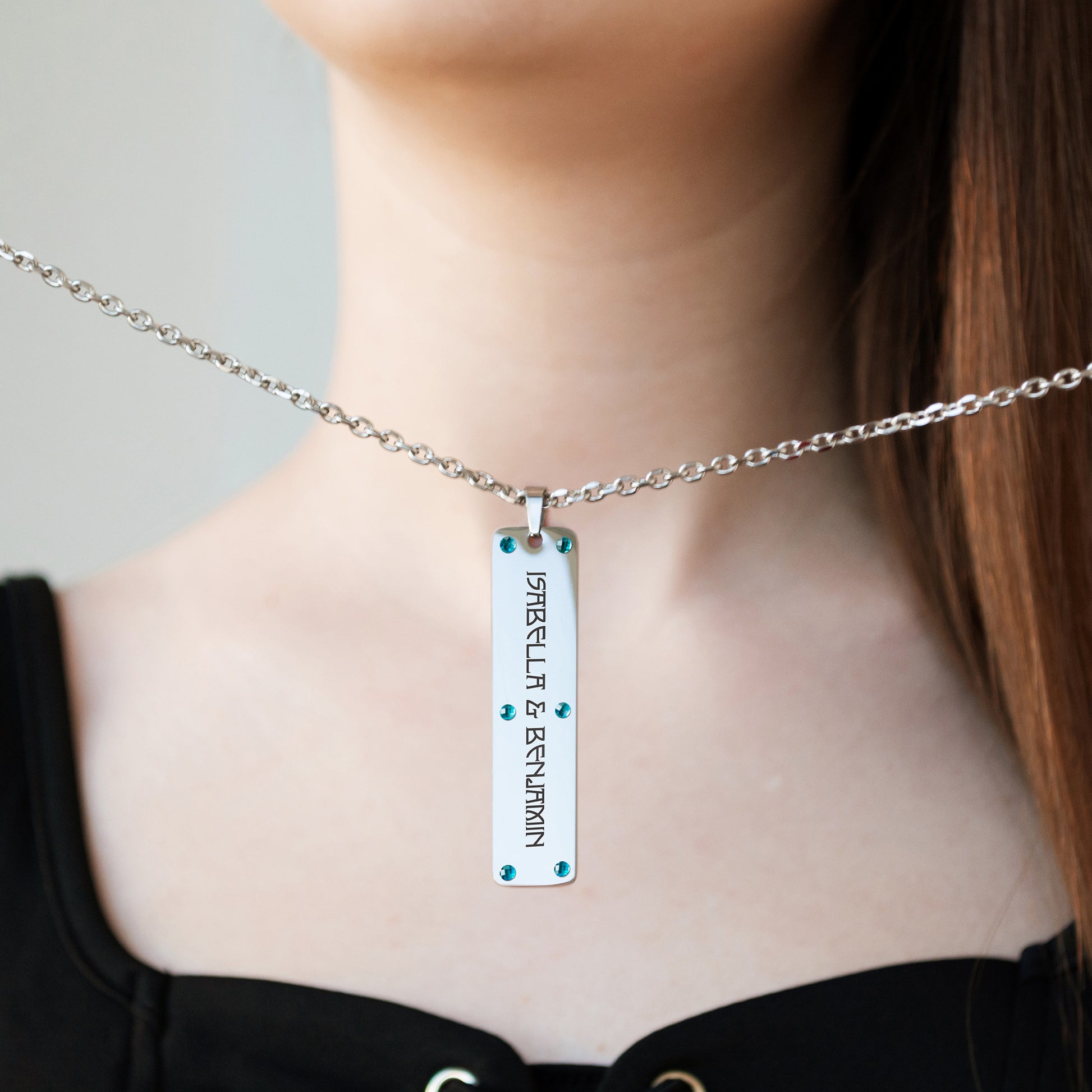 Each pendant is carefully engraved on premium stainless steel. The addition of beautiful gemstones — including opal, CZ, onyx or ruby — gives every piece a distinctive look. Whether it’s a gift for someone you love or a daily reminder for yourself, this necklace captures what matters most — in your own words.