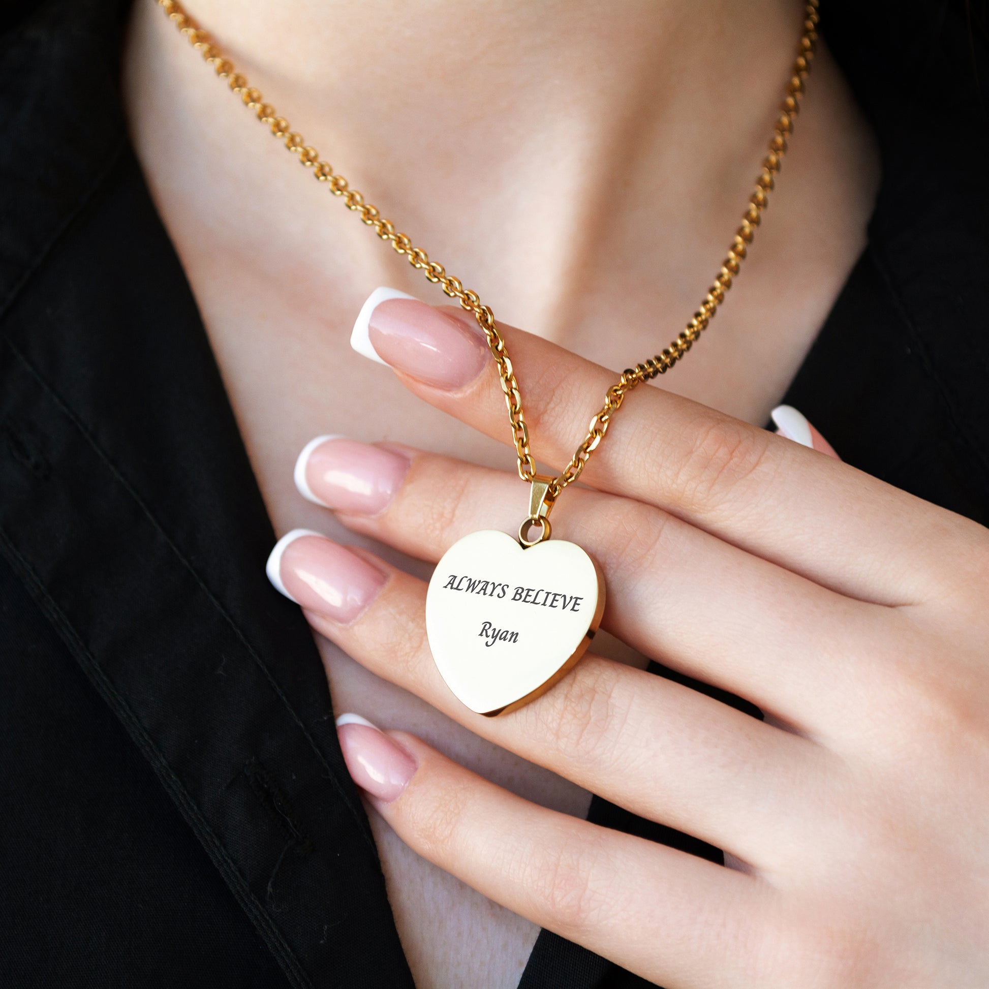Each pendant is carefully engraved on premium stainless steel and finished in your choice of silver or gold plating. Whether it’s a gift for someone you love or a daily reminder for yourself, this necklace captures what matters most — in your own words.