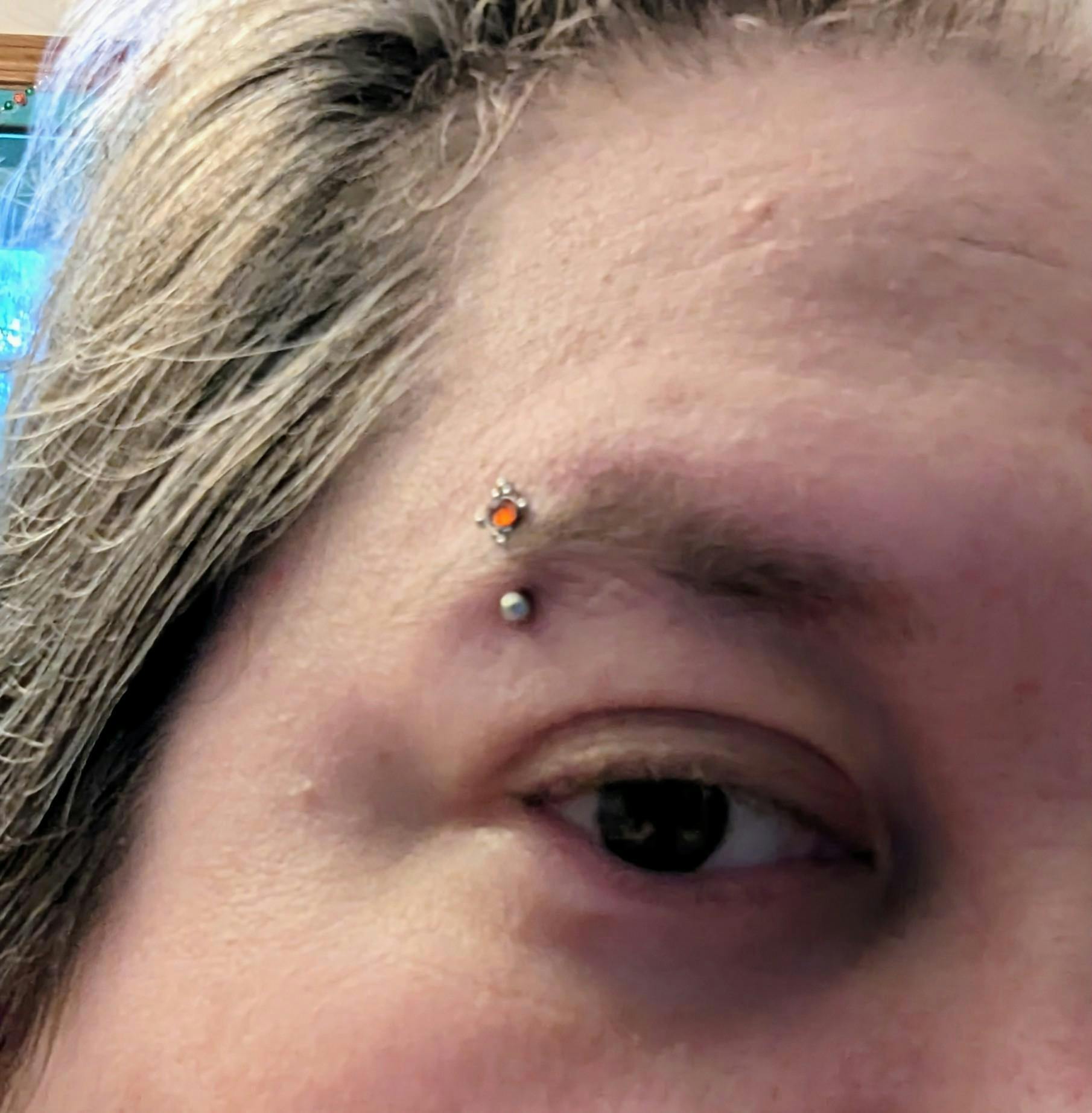 Really wonderful jewelry for an eyebrow piercing! The decorative end with cabochon and metal beads is well made, nicely proportioned, and looks amazing. I'll be ordering again! Thanks!