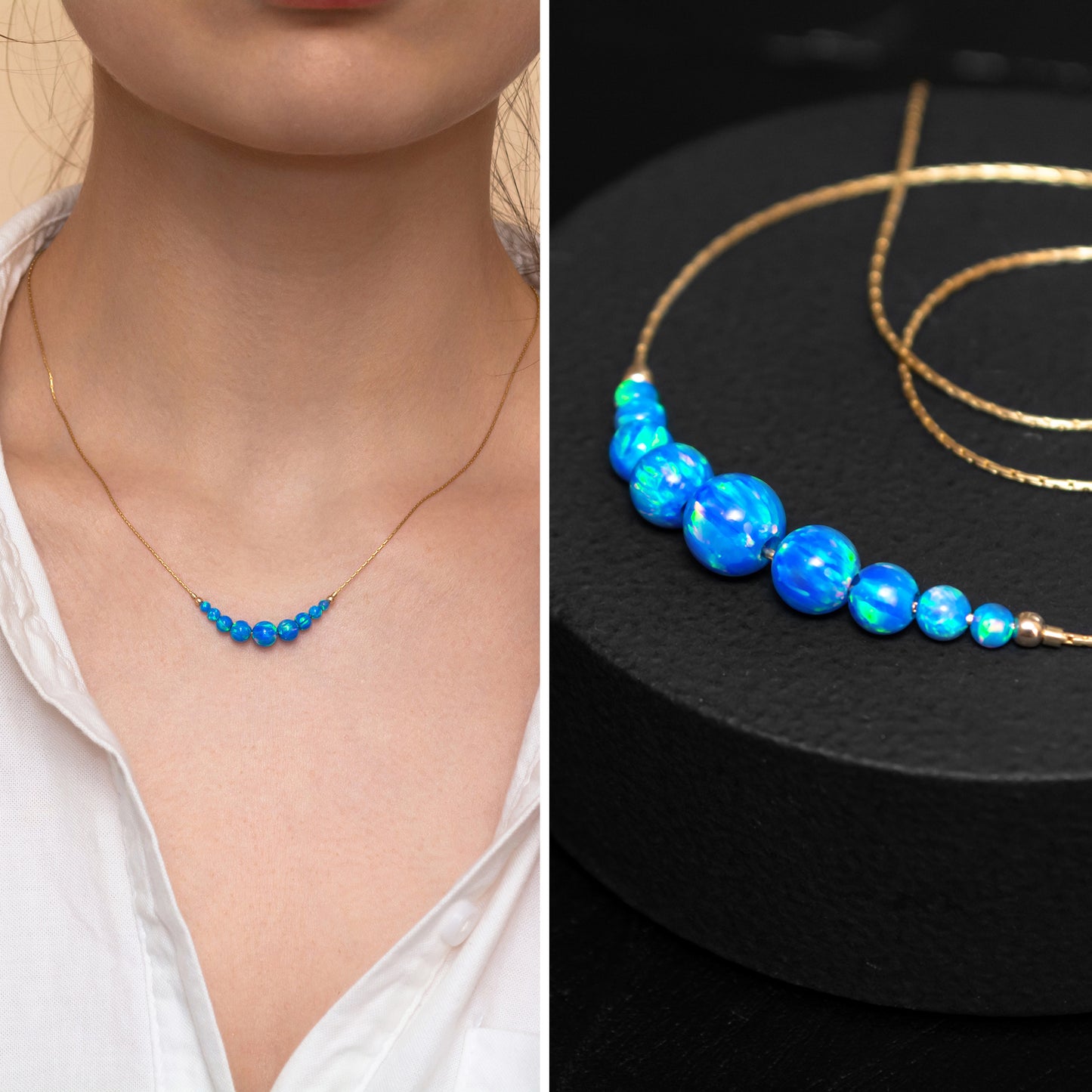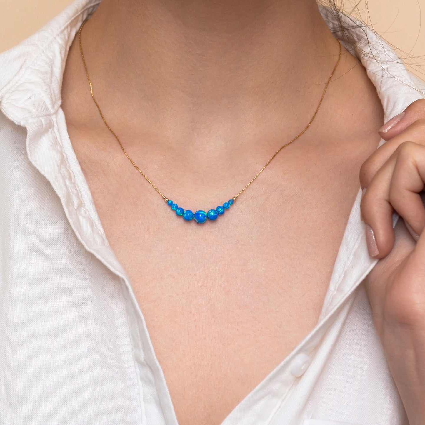Adorn yourself with this elegant silver or gold-filled necklace, embellished with opal beads for a touch of sophistication.
