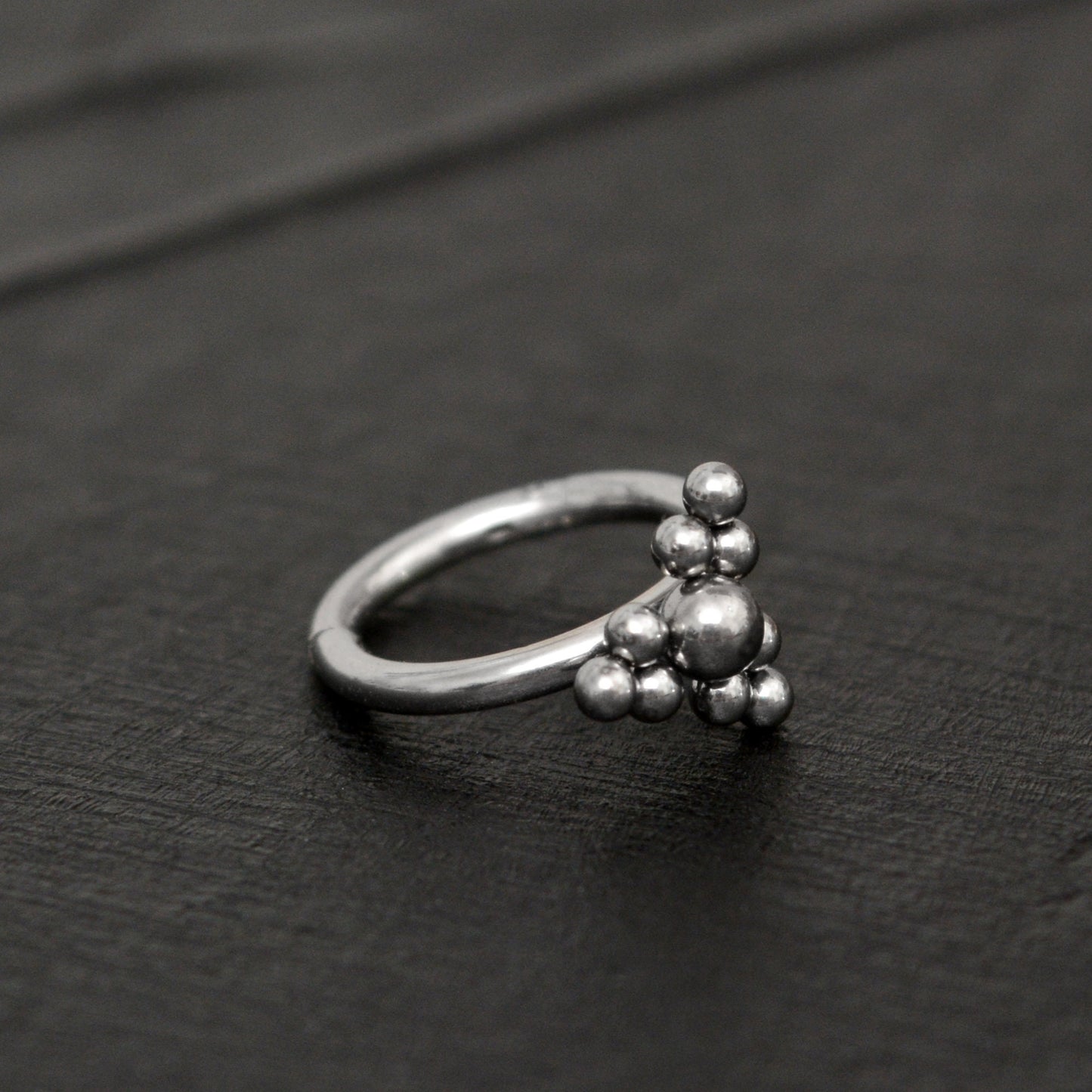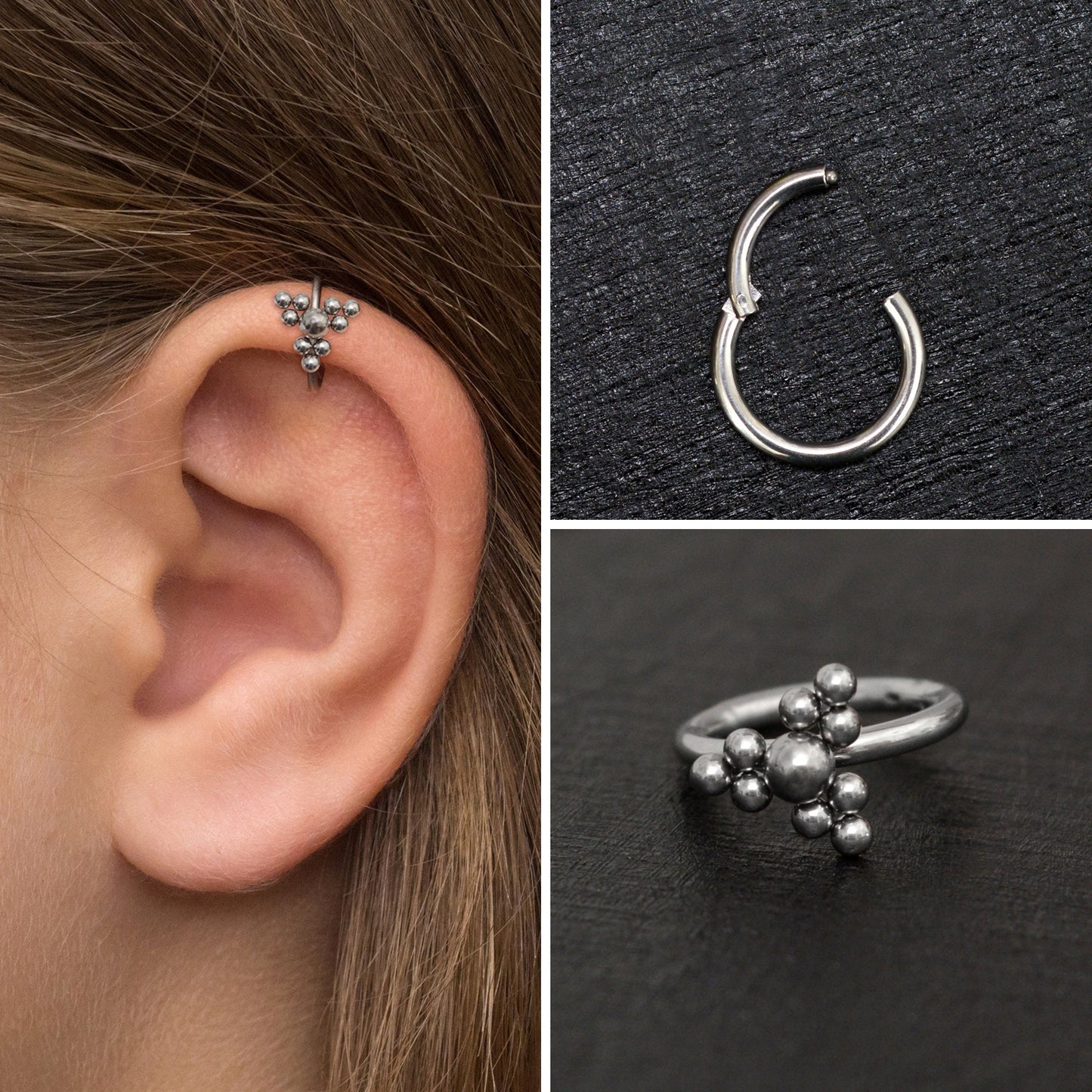 Lauren W. The design is gorgeous and the piercing is easy to put in, as it is a clicker hoop. I can wear it without any issue (I have had trouble with allergic reactions with other materials before).