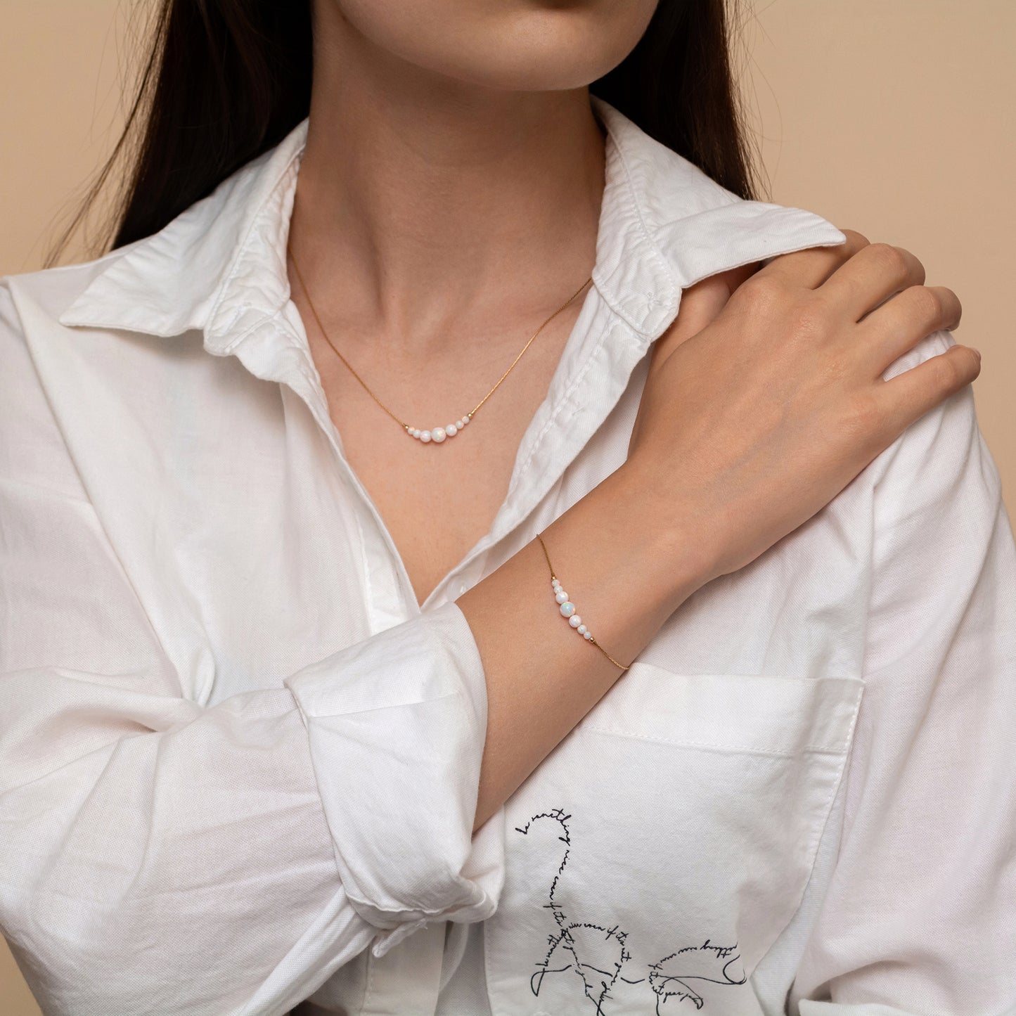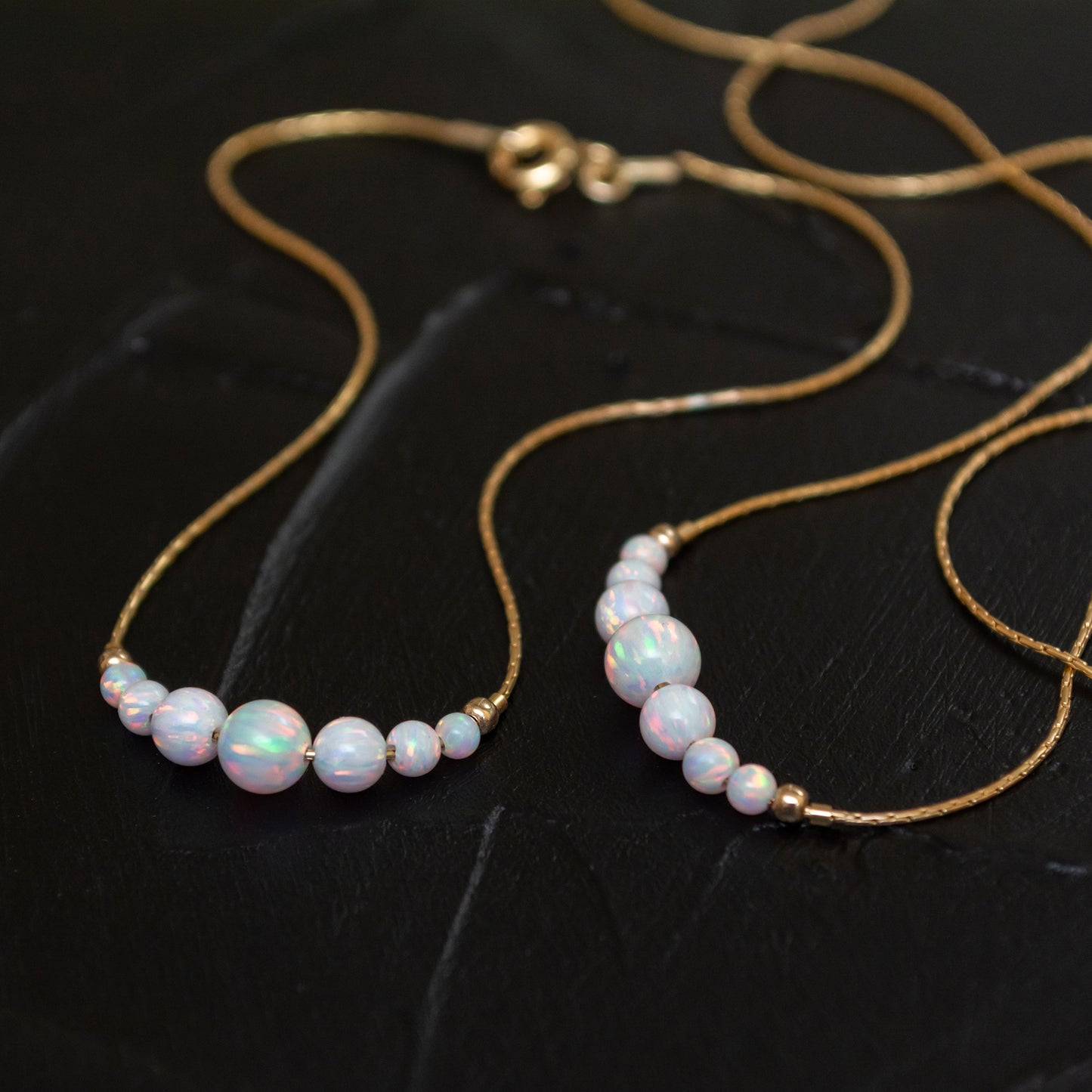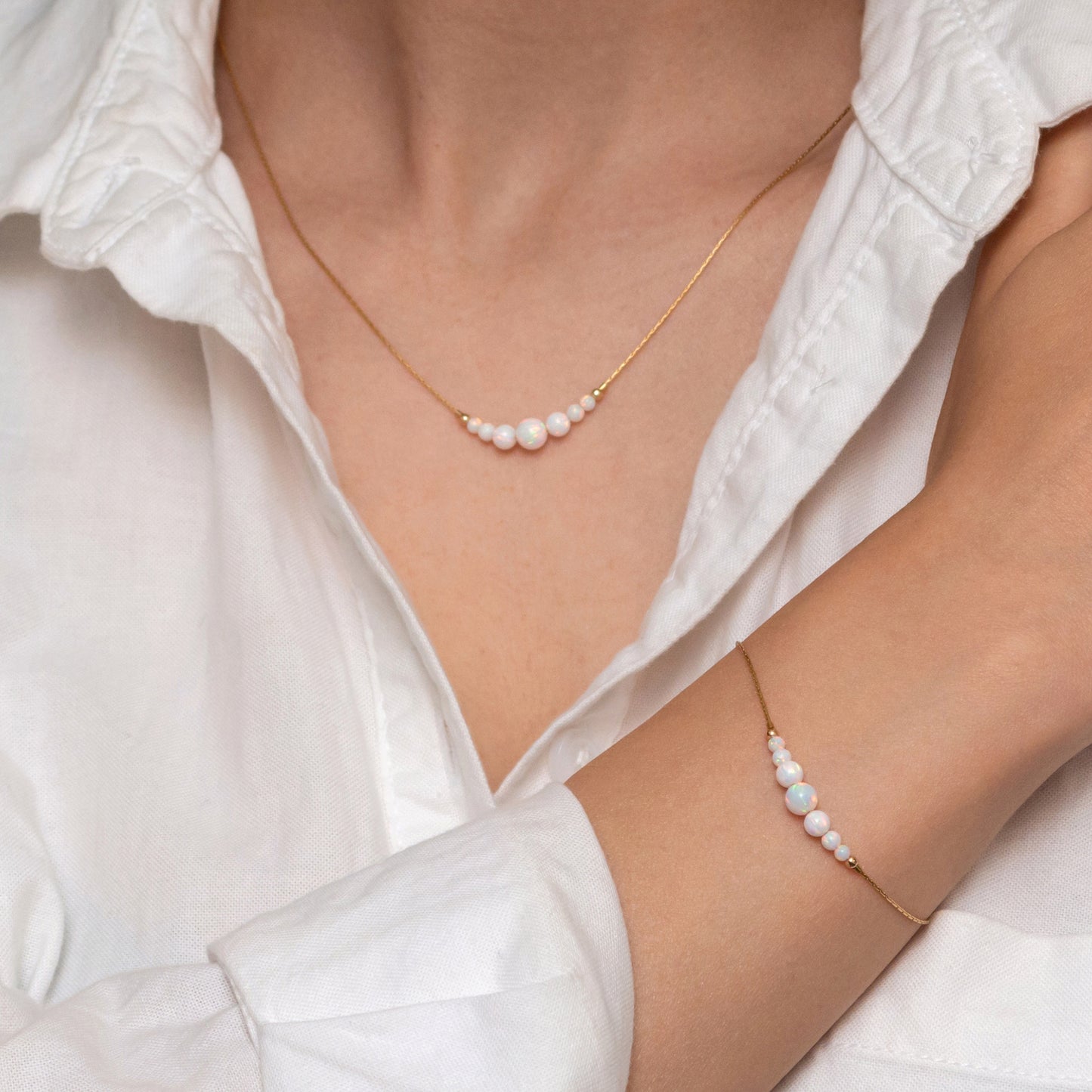 Delicate Personalized Silver or Gold-Filled Opal Bead Necklace and Bracelet Set