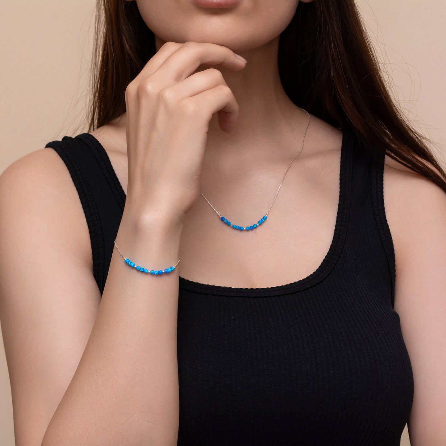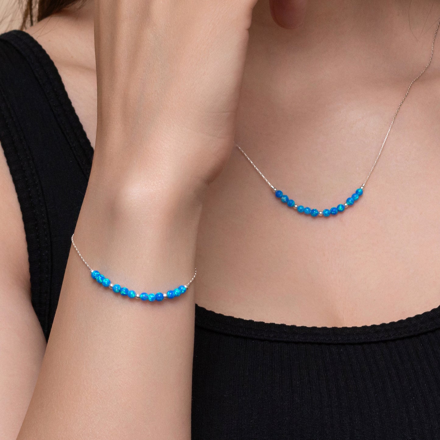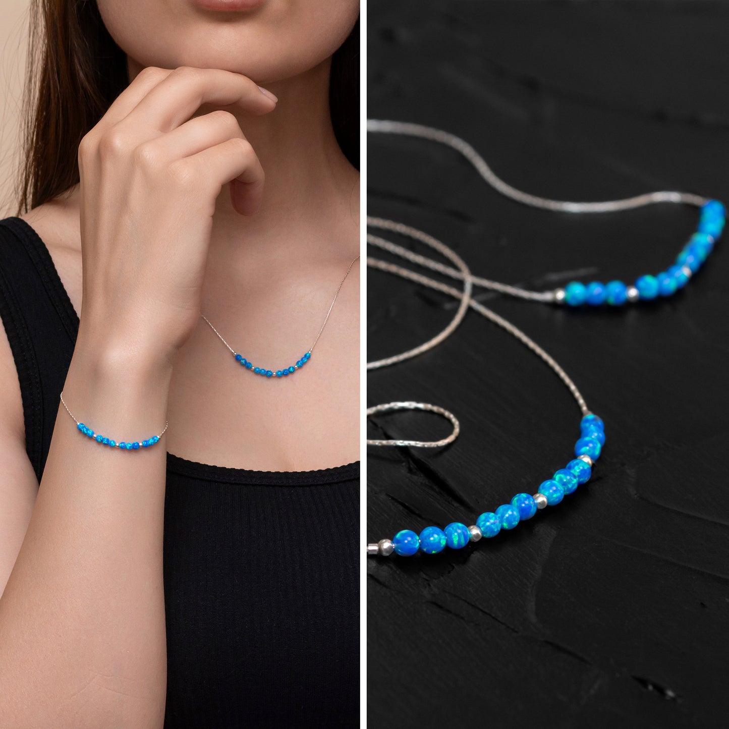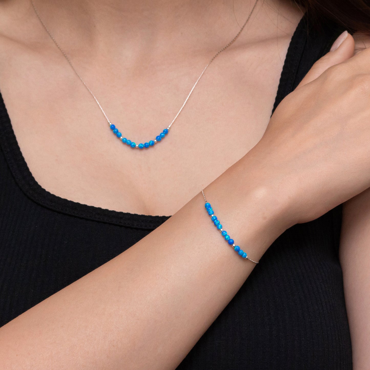 Discover the elegance of our customizable silver or gold-filled necklace and bracelet set, adorned with exquisite opal beads in your choice of colors, offering a touch of refined beauty.