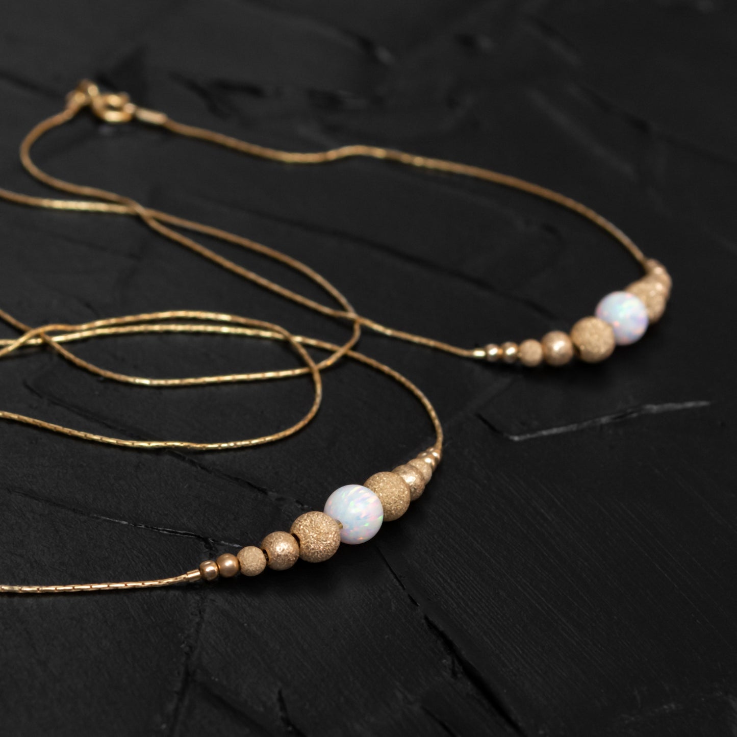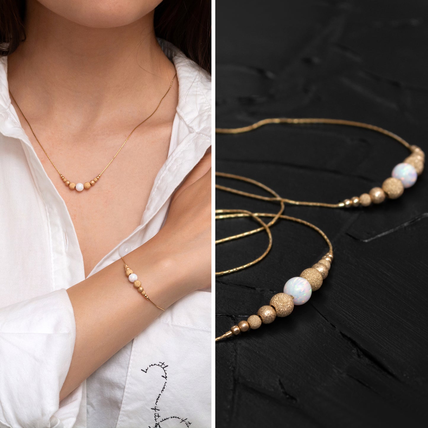 Discover the elegance of our customizable silver or gold-filled necklace and bracelet set, adorned with exquisite opal bead in your choice of colors, offering a touch of refined beauty.