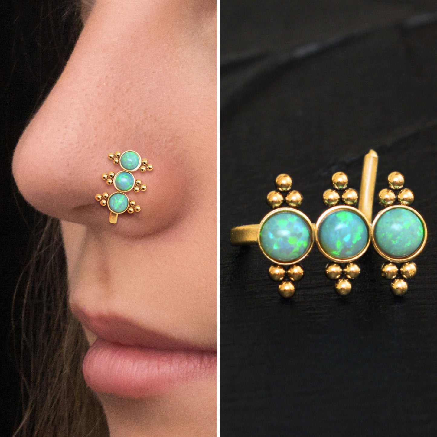 Opal Nose Stud Ring Surgical Steel