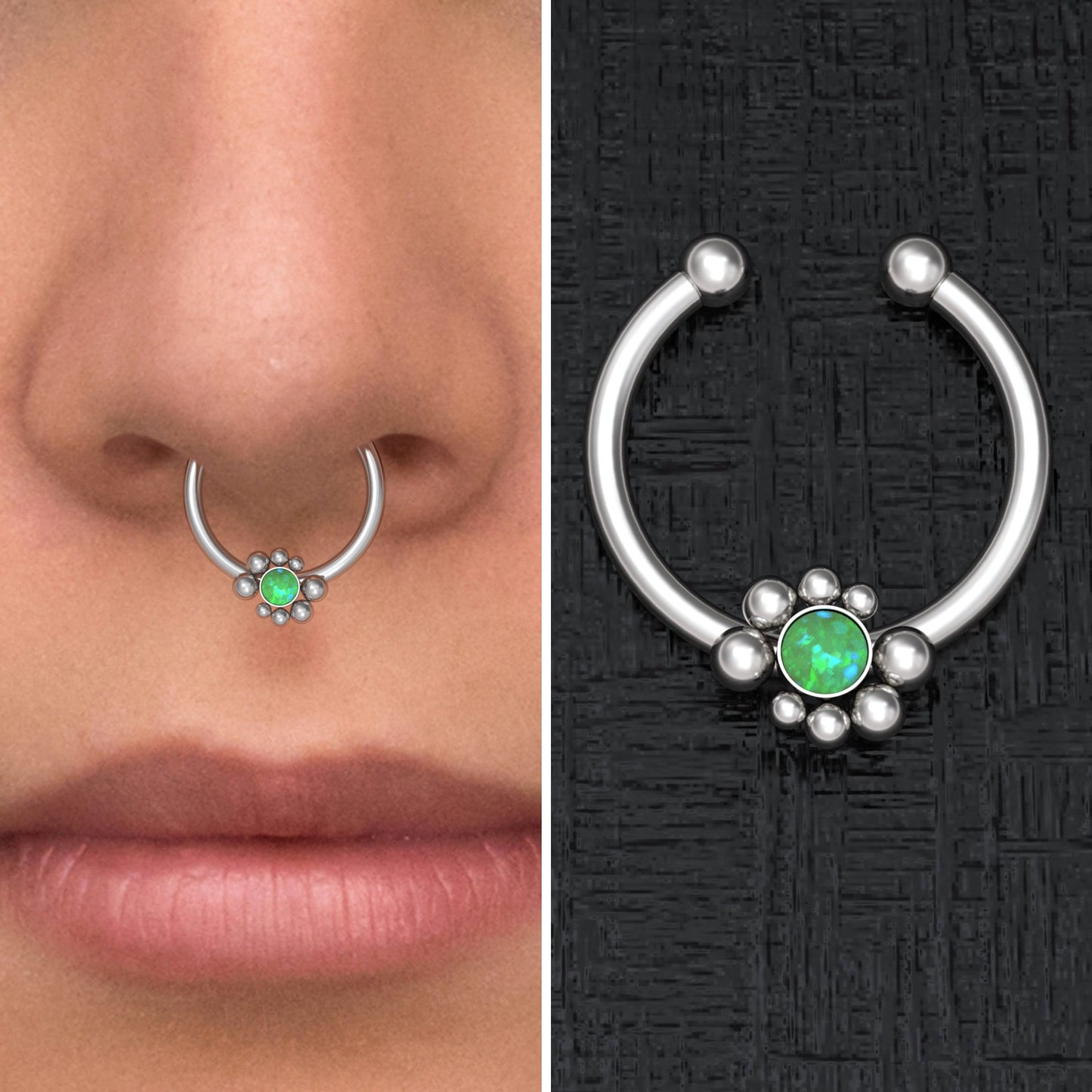 Surgical Steel Fake Septum Ring Opal